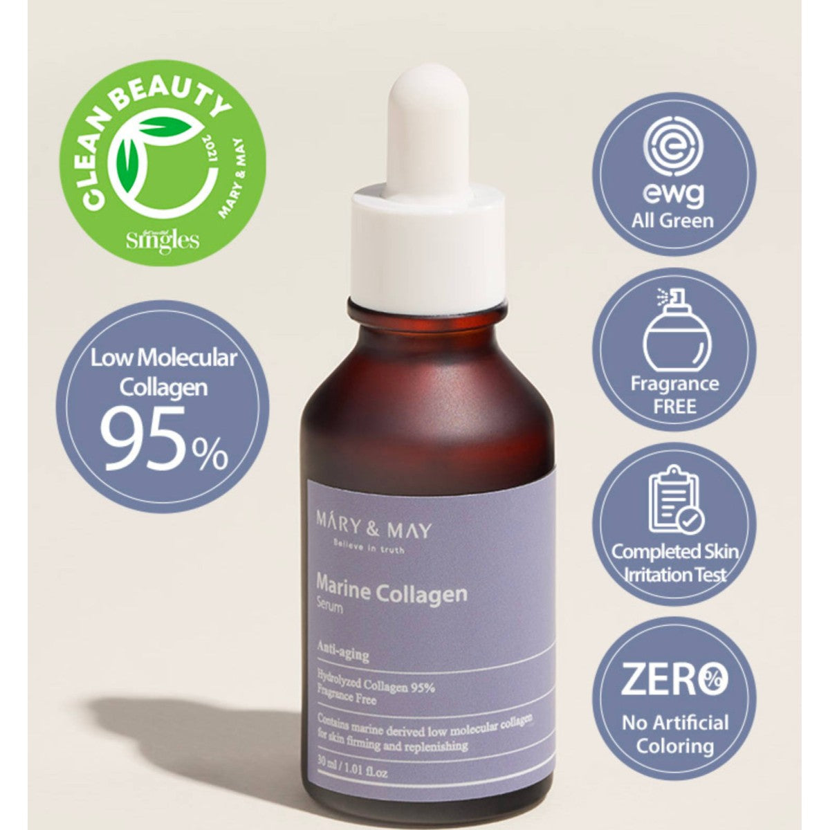 Παρουσιάζουμε τον ορό θαλάσσιου κολλαγόνου της Mary&May. Αυτός ο ορός περιέχει 95% χαμηλού μοριακού κολλαγόνου για πιο σφριγηλή επιδερμίδα. Με το χαμηλό μοριακό του βάρος, απλώνεται αποτελεσματικά και απορροφάται γρήγορα για άμεση ενυδάτωση. Βελτιώστε το δέρμα σας με αυτή την επιστημονική και ταυτόχρονα στοχευμένη φόρμουλα!