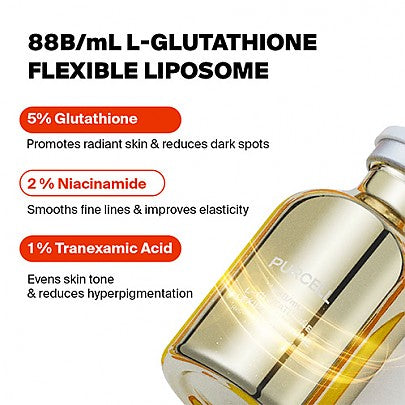 88B/mL L-Glutathione Flexible Liposome is enriched with 5% highly concentrated Glutathione to improve skin imperfections and reduce freckles. This gentle yet potent formula effectively suppresses and controls the formation of freckles and melanin pigmentation.