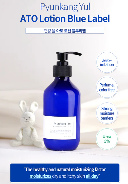 Experience gentle nourishment for sensitive skin with Ato Lotion Blue Label by Pyunkang Yul!