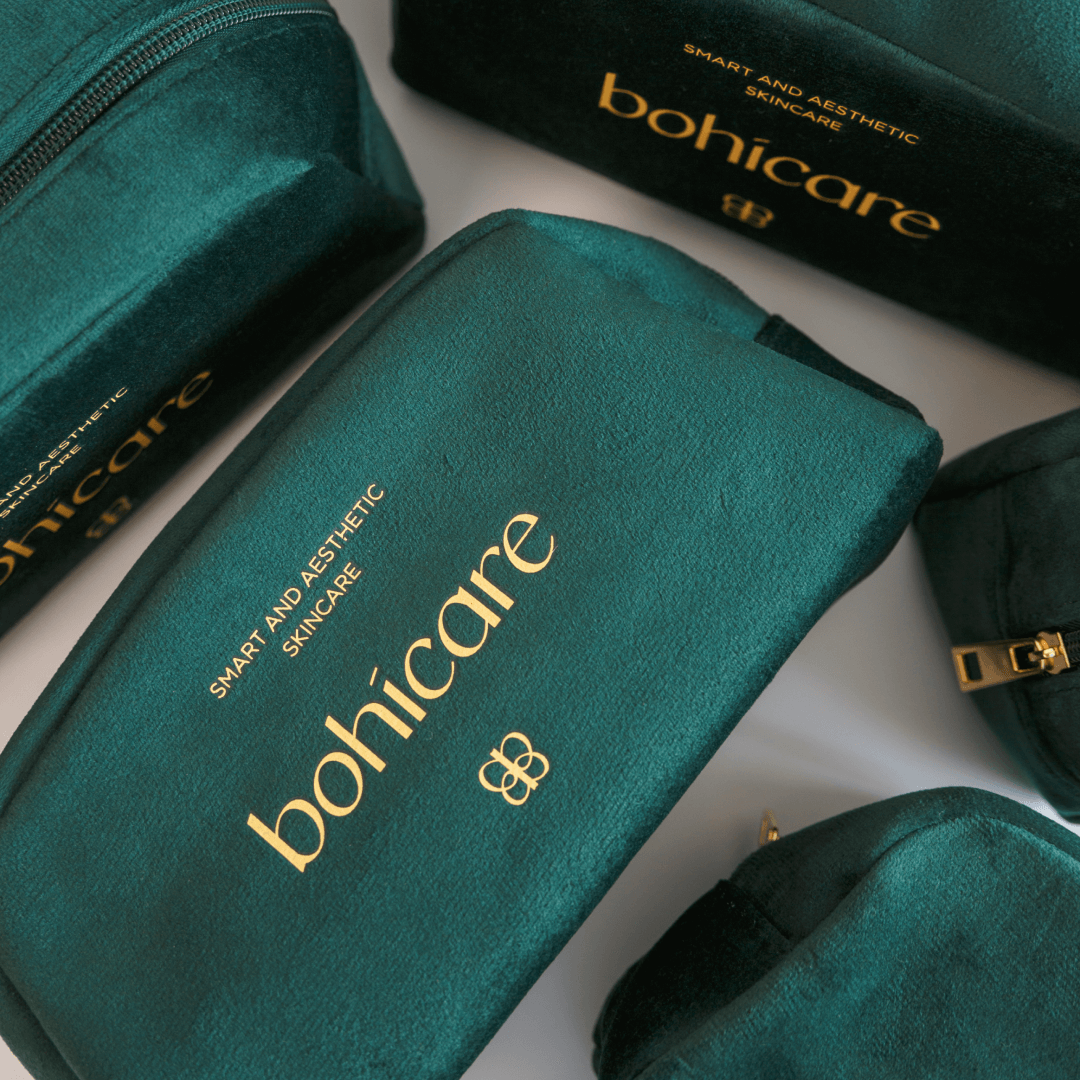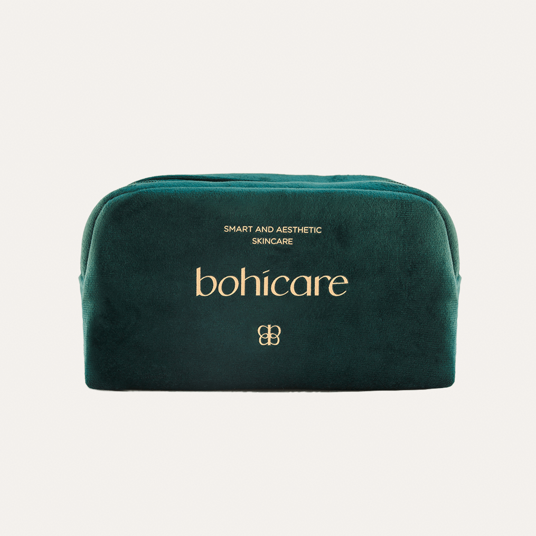 A spacious velvet pouch for storage and traveling solution of your favourite cosmetics by Bohicare!