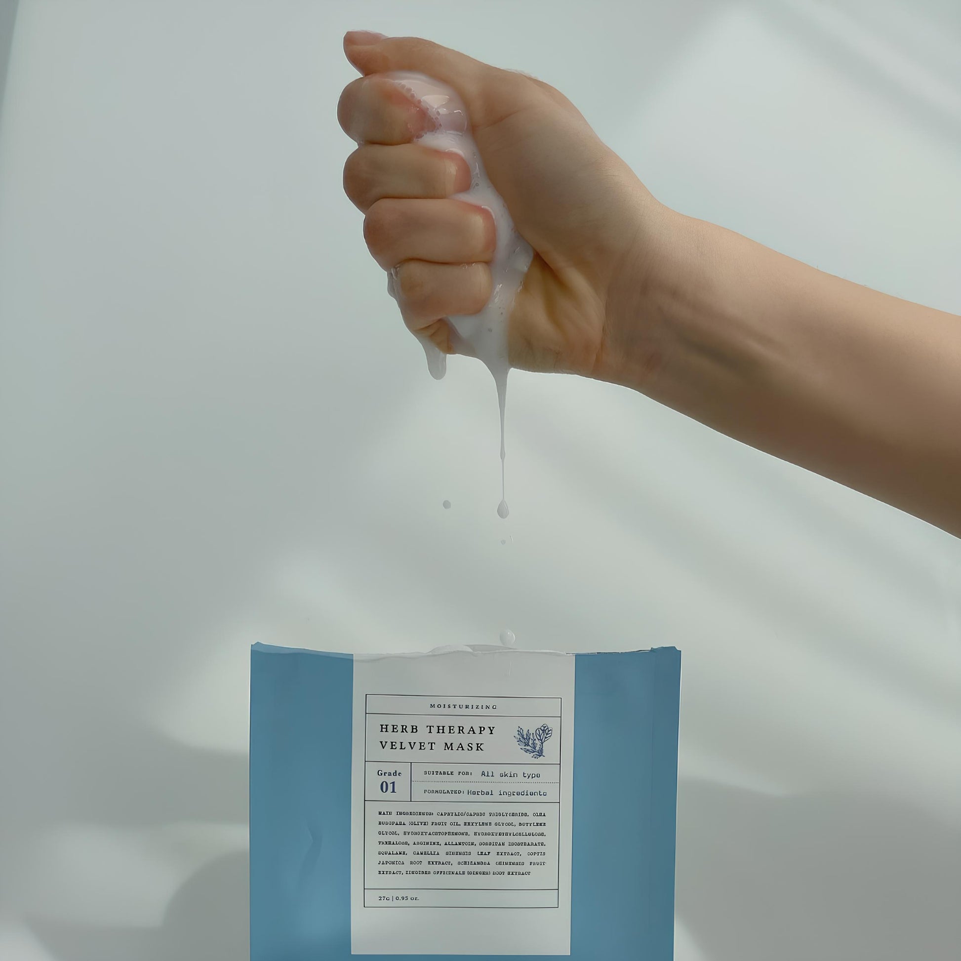 Herb Therapy Velvet Mask is crafted with natural herbal ingredients, making it ideal for hydrating and soothing sensitive skin.