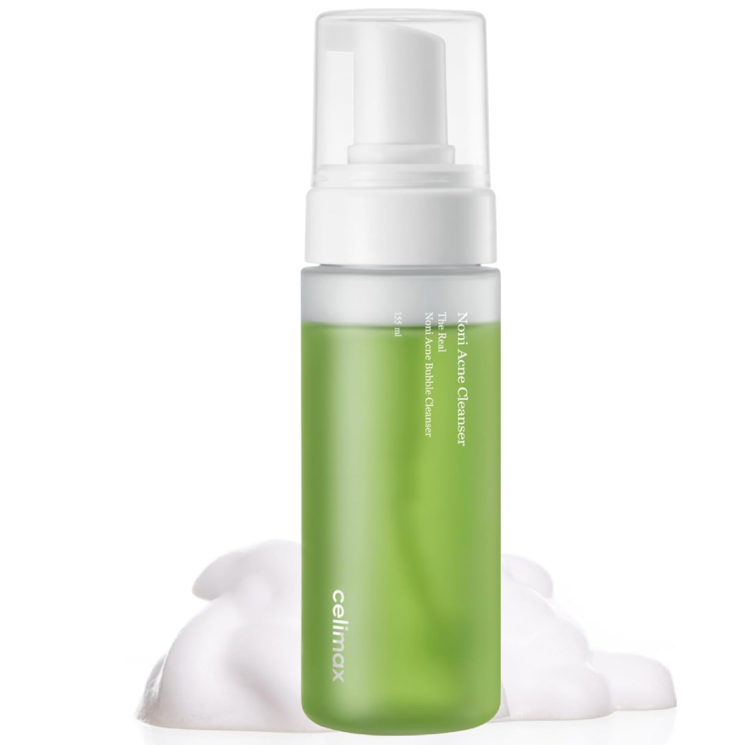 The Noni Acne Bubble Cleanser by Celimax effectively relieves and soothes skin troubles caused by excess sebum, dirt, and irritations.