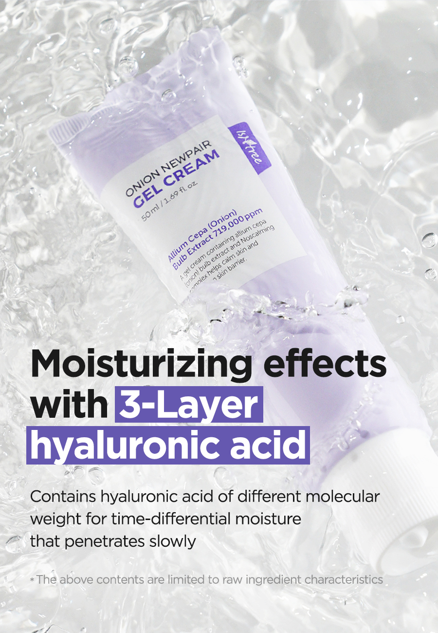 Onion New Pair Gel Cream is formulated with NoSCalm Complex (sodium heparin, allantoin, panthenol and Heartleaf Houttuynia) to soothe sensitive, irritated skin.