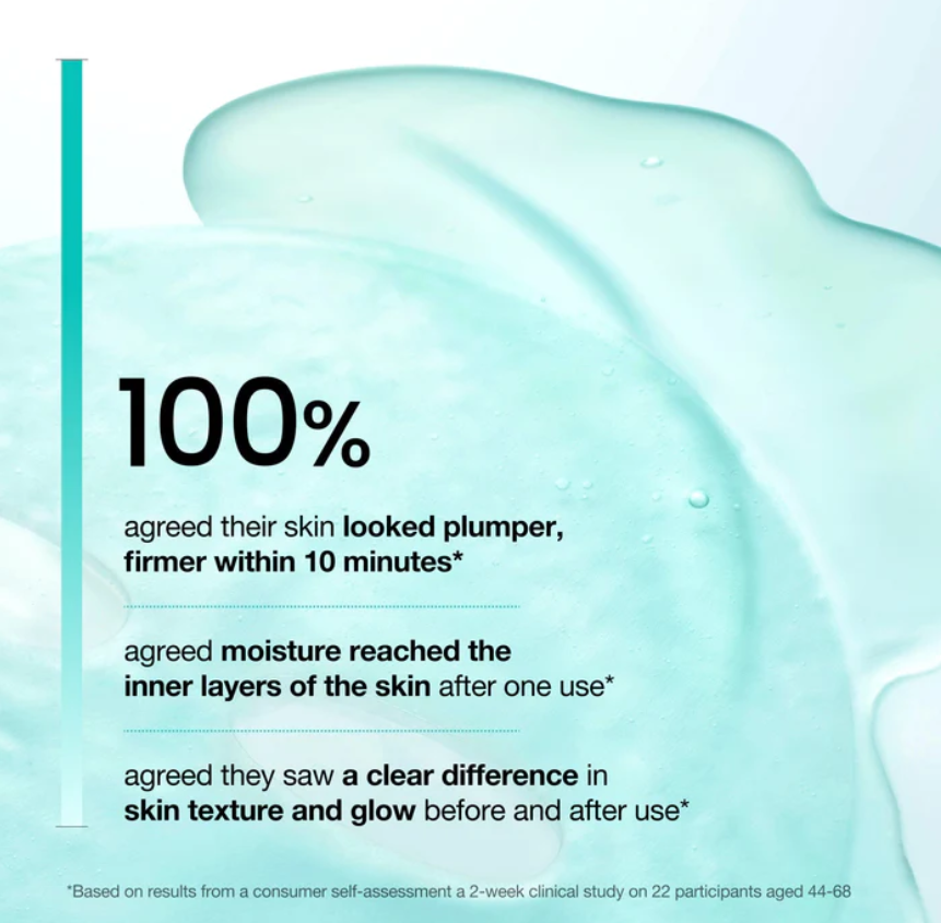 Its ultra-adhering, contour-hugging material wraps every curve of the face, infusing skin with deep, long-lasting hydration.