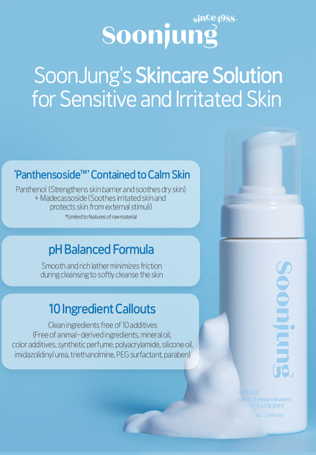 SoonJung 2021 NEW!!! – A thick cream-textured cleanser with weakly acidic bubbles for moisturizing facial cleansing.