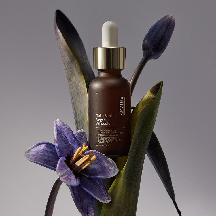 The Tulip Barrier Vegan Ampoule contains Black Tulip extract and Carnosine to help keep your skin healthy and firm.