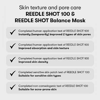 Эта двухступенчатая маска с Reedle Shot 100 и Reedle Shot Balance Mask помогает улучшить текстуру кожи и сбалансировать ее состояние.